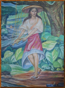 Juban also paints the same subjects as Botong, such as fiestas featuring the Virgin and other folk genre concentrating on fishing subjects of his home town of Angono. He joined several group exhibits since 1973 and had one-person shows in the different art galleries here and abroad. He has done several murals for the different private and public institutions such us (Pag-Asa) for National Orthopedic Hospital, (Anazibu and Batangan) for Batulao's Clubhouse in Nasugbu, Batangas, (History of Meralco) for Lopez Family and (Nymphs) being displayed at Colonnade Building lobby in Makati.