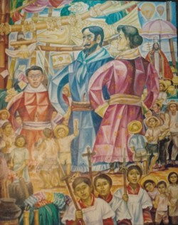 Salvador Juabn worked with National Artist Vicente Manansala for the murals for the Philippine Heart Center for Asia and the United Coconut Planters Bank.